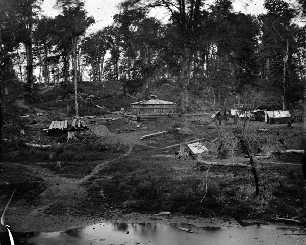 Soldier sitting by Chickasaw Bayou, Mississippi 1864